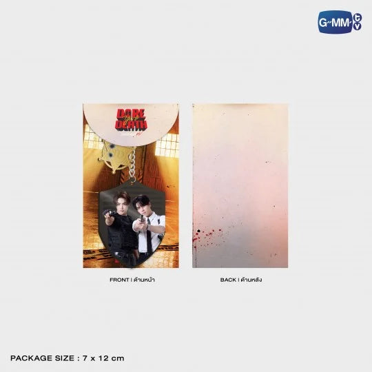 Acrylic keychain de JoongDunk con imagen de JoongDunk de la serie “Dare You to Death”, acompañado de un acrylic charm en forma de estrella impreso con el logo “JD”. Un accesorio ideal para llevar contigo y mostrar tu apoyo a la serie con un diseño llamativo y coleccionable.