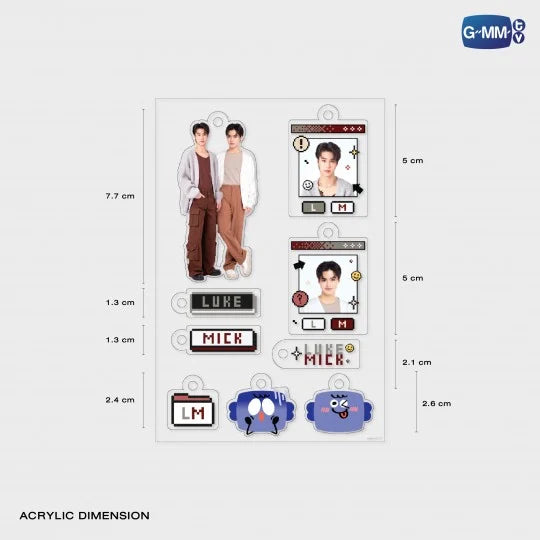 Un acrylic keychain con Luke–Mick, emojis y varios símbolos icónicos relacionados con ambos. Personalízalo a tu gusto: añade tantos dijes como quieras… o tan pocos como prefieras. Toda la ternura, con tu estilo, reunida en un solo llavero.